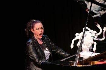 Ohne Wut kein Fortschritt. Mit Wut im Bauch, und ohne Triggerwarnung(!), wird Medusa diesmal selbst die ihr angetane Gewalt mithilfe heutiger Erfahrungsmuster schildern, den Tathergang in seiner Brutalität erzählen, realistisch und krass, wie er tatsächlich gewesen sein könnte (der weinsteinweiße Bademantel wedelt bedrohlich) – ihr Horrorbericht steht in faszinierendem Widerspruch zu ihrem antiken Sprachgestus im hexameterartigen Stil. Unsere Medusa ist dazu mit Leib und Seele Musikerin - ihre Wut ballt sich förmlich in der Musik: Sie schreckt nicht zurück vor frauenfeindlichem Rap, nicht vor frauenlobhudelnder Romantik, sie durchsucht alle Genres nach manifesten und versteckten Sexismen, sie wutinterpretiert Musik neu, jedes Stück ein Wutausbruch: Schumann mit Boxhandschuhen auf den Flügel gedroschen, Falco mit Barbiepuppen aufs Schlagzeug gefetzt, Deutschrapper Nimos Leck Sibbi in die Bütt gestellt, Roland Kaisers Warum hast du nicht nein gesagt ins Mikrofon gehöhnt, Helene Fischers gesammelte Schmachtfetzen in die Tonne gejault, und Tom Jones’ Femizid-Hymne Delilah wegen hoher Aktualität exhumiert und exekutiert. Fischmann bearbeitet nicht nur den Flügel, sondern auch – zum ersten Mal – ein Schlagzeug. Sie haut drauf, und sie wird uns umhaun!