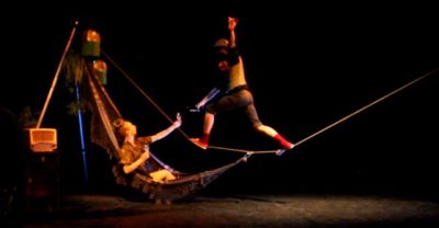 Diese beiden wunderlichen Charaktere haben eine Mission: Menschen zusammen- zubringen und die Welt zu verändern. Ihr Plan: TANZEN! Ihre Zauberformel: ZIRKUS! Und so haben sie ihre wertvollsten Hab- seligkeiten zusammengesucht und sind in ihren kleinen Wagen gestiegen – mit dem Ziel, jeden Winkel der Welt in einen ambu- lanten Tanzsaal zu verwandeln. Sich lebendig fühlen, Gemeinschaft spüren, jauchzen, jubeln, triumphieren, das ist, was sie suchen und das ist, was sie teilen wollen. Schlappseil-Artistik und Komik sind hier zu einer liebevollen zirzensischen Erzählung verwoben.
